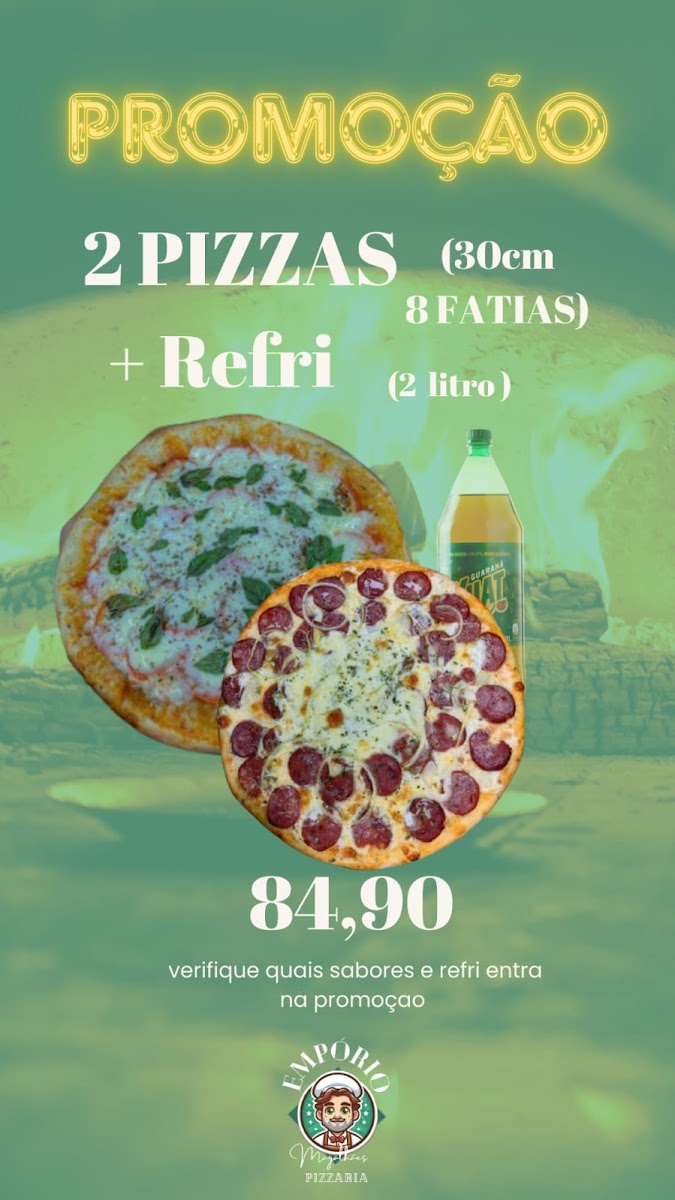 Empório PIZZAS Magalhães, nestled in Santa Rosa, Belo Horizonte, offers a vibrant selection of pizzas that captivate with their rich flavors and generous toppings. Known for quality ingredients and authentic taste, this pizza haven delivers a satisfying experience whether dining in, taking away, or enjoying their reliable delivery service.